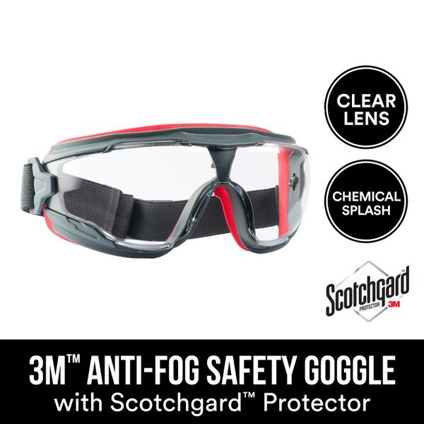 Product Name: 3M™ Anti-Fog Goggle with Scotchgard™ Protector 47212H1-VDC, Gray/Red, Clear Lens, 5/cs