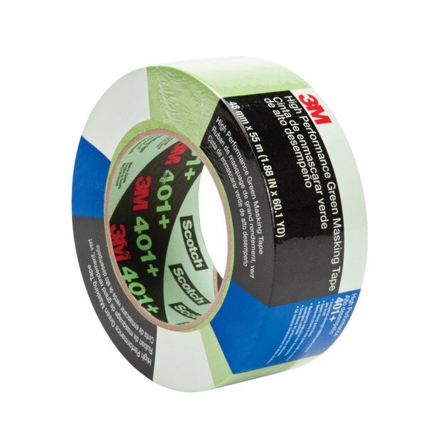 Product Description: 3M™ High Performance Green Masking Tape 401+ is designed to deliver sharp paint lines where surface temperatures can reach up to 250°F/121°C for 30 minutes. This green crepe paper tape is ideal for critical paint masking applications in automotive, specialty vehicle, and industrial markets, where strong holding and high temp performance is required.