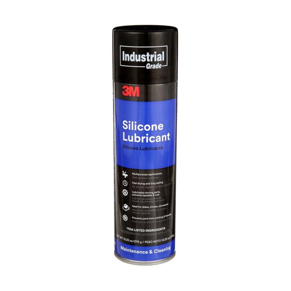 Product Description: 3M™ Silicone Lubricant is a silicone-based release agent designed for industrial lubrication applications. Its easy-to-use spray can makes the application 3M Silicone Lubricant simple in tasks such as lubricating machinery and moving parts; slides, chutes, and conveyors; preventing the buildup of inks and paints; eliminating squeaks caused by friction; preventing sticking and freezing; and protecting against rust.