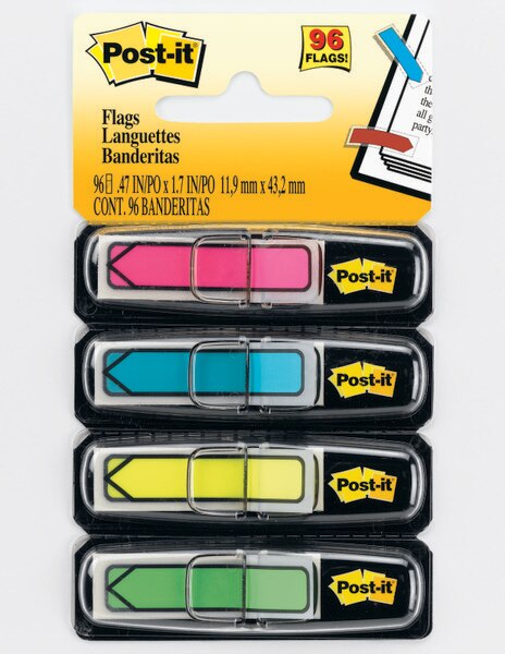 Find it fast with Post-it® Flags. They make it simple to mark, flag or highlight important information. They stick securely, remove cleanly and come in a wide variety of colors. Draw attention to critical items or use them to index, file or color code your work, either at home, work or in the classroom.