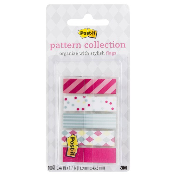 Product Name: Post-it® Pattern Flags, Carnival Pattern Collection, 0.47 in. x 1.7 in. 100/On-the-Go Dispenser, 1 Dispenser/Pack