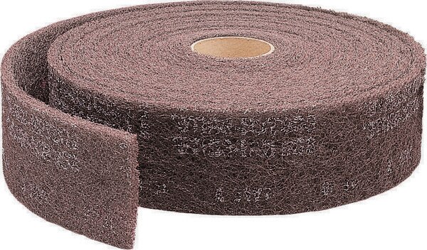 The Scotch-Brite™ SE Surface Conditioning Roll is available in three grades of aluminum oxide abrasive: medium (MED), coarse (CRS), and fine (FIN). Aluminum oxide is a popular choice among industrial professionals because of its cut-rate and long life. This mineral is a tough, durable abrasive that self-fractures to expose fresh cutting edges in use, whereas traditional abrasives, such as garnet, quickly wear down with use.